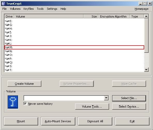 Nós há pouco criamos prosperamente um volume de TrueCrypt (arquive recipiente).